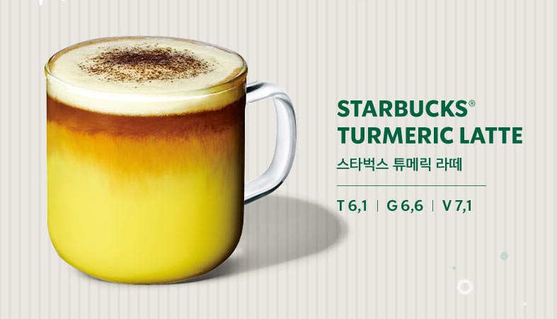 몸에 좋은 튜메릭(Turmeric)이 은은하고 담백하게 블론드 샷과 어우러진 라떼로 추운 겨울철 가슴속까지 따듯한 기운을 북돋아 주는 이국적인 느낌의 라떼이다. 사이렌 오더 시 튜메릭라떼는 별 3개가 추가로 증정되며, 매장 주문시 음료 하잔 당 별 2개가 증정된다.