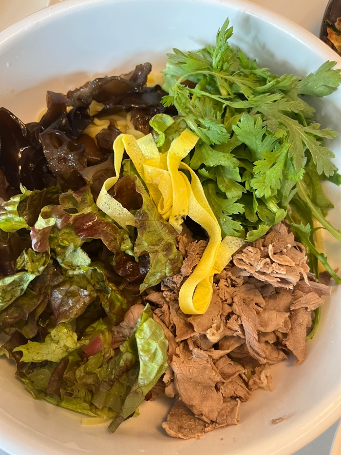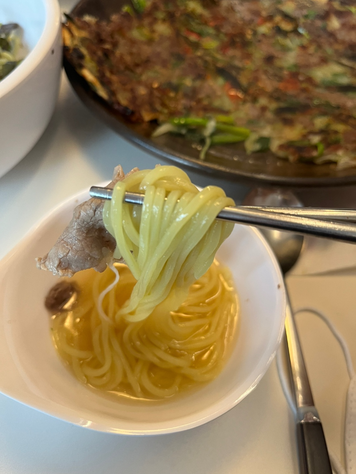 국물이 진하고 시원하고 얼큰합니다. 쫄깃한 면과 부드러운 고기의 조합이 좋았어요.