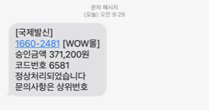 4일 오전에 받은 문자 한통, WOW몰에서 371,200원 결제금액이 승인되었다는 것이었습니다. 저는 맡아버렸지요.