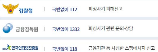 피싱피해시 주요 연락처