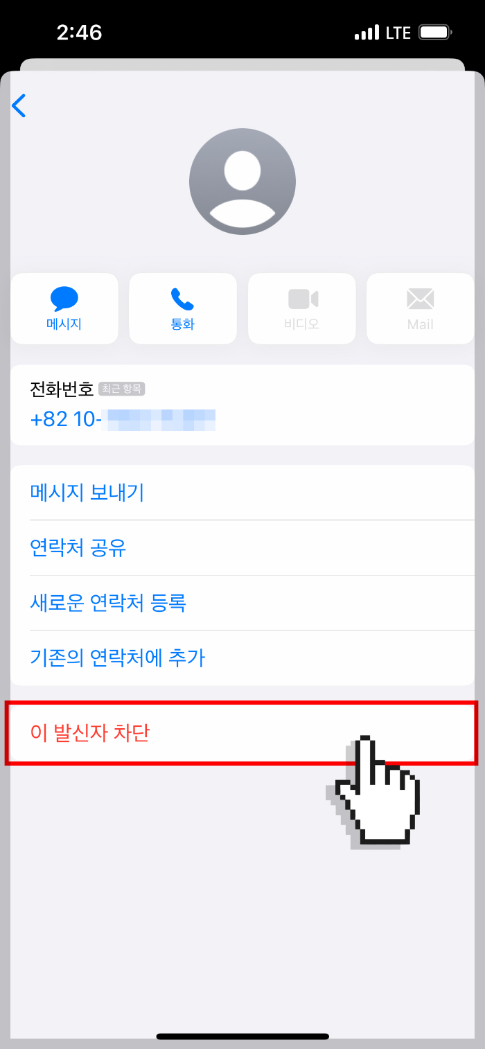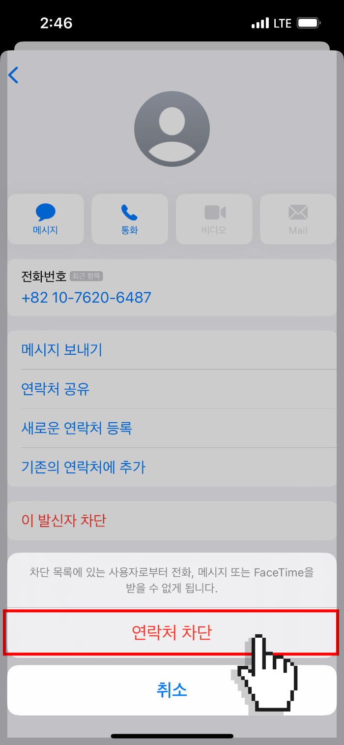 4. '연락처 차단' 클릭