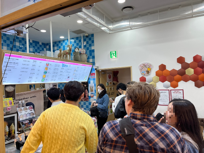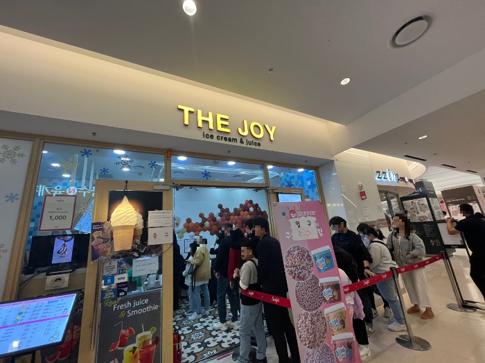 쉐프의국수N육개장 입구 바로 맞은 편 '더죠이'는 식당에 들어가서 나올때까지 줄이 정말 길었어요. 대체 무엇인가 보니 '구슬 아이스크림'이었습니다.