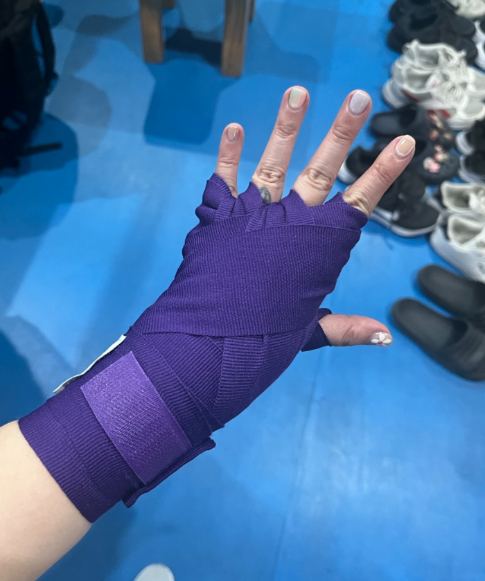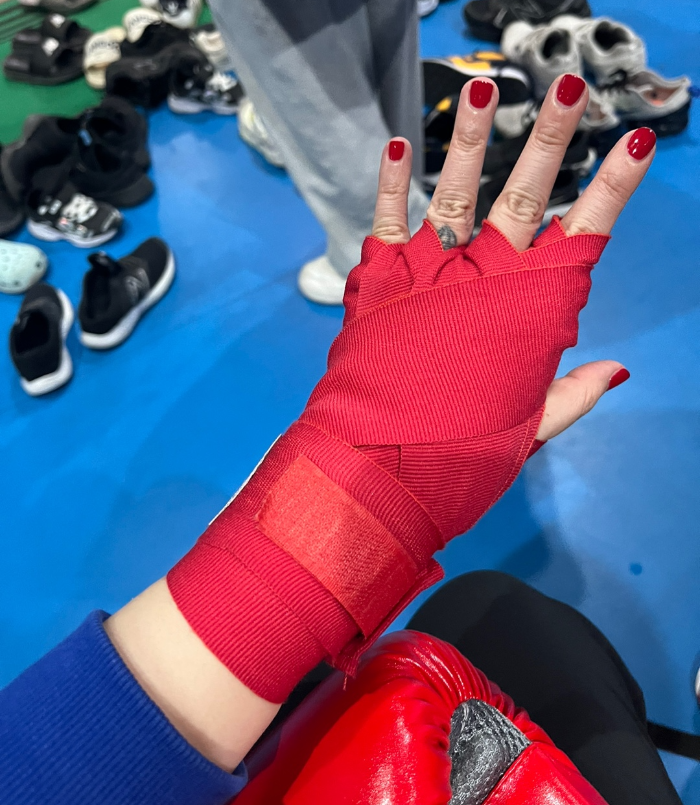 핸드랩은 손목, 손가락, 너클 손 전체를 지지하는 역할을 해줘서 부상을 입지 않도록 글러브를 끼기 전 중요한 역할을 해요.(필수★)