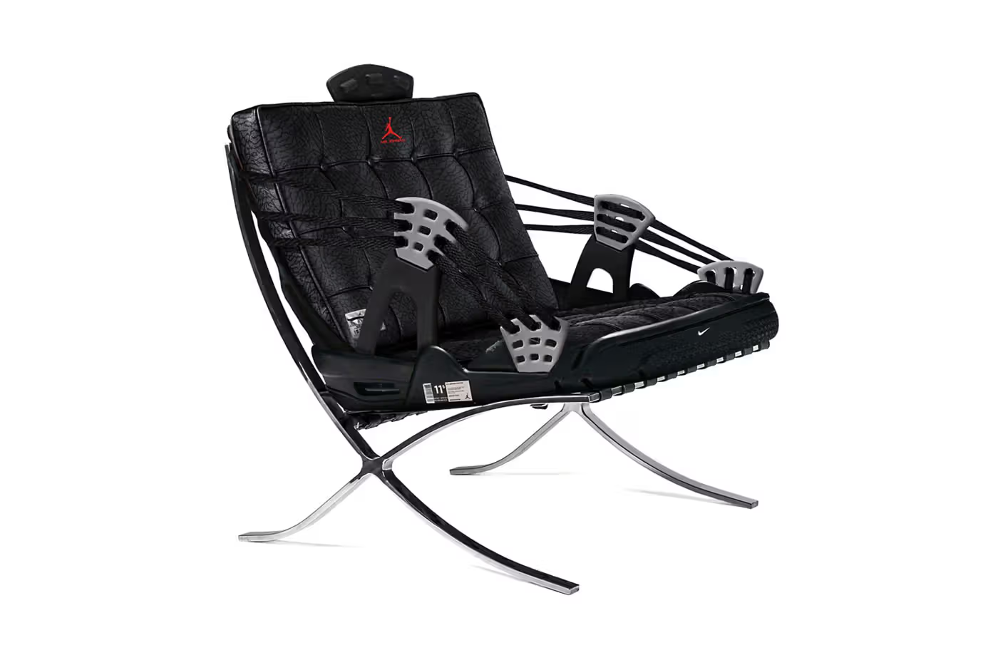 독일에서 태어난 미국의 건축가인 루드비히 미스 반 데어로에의 대표적인 의자인 '바르셀로나'는 '에어조던 4'의 빨간색 에어조던 점프맨과 로고가 만나 새롭게 재해석 되었다.