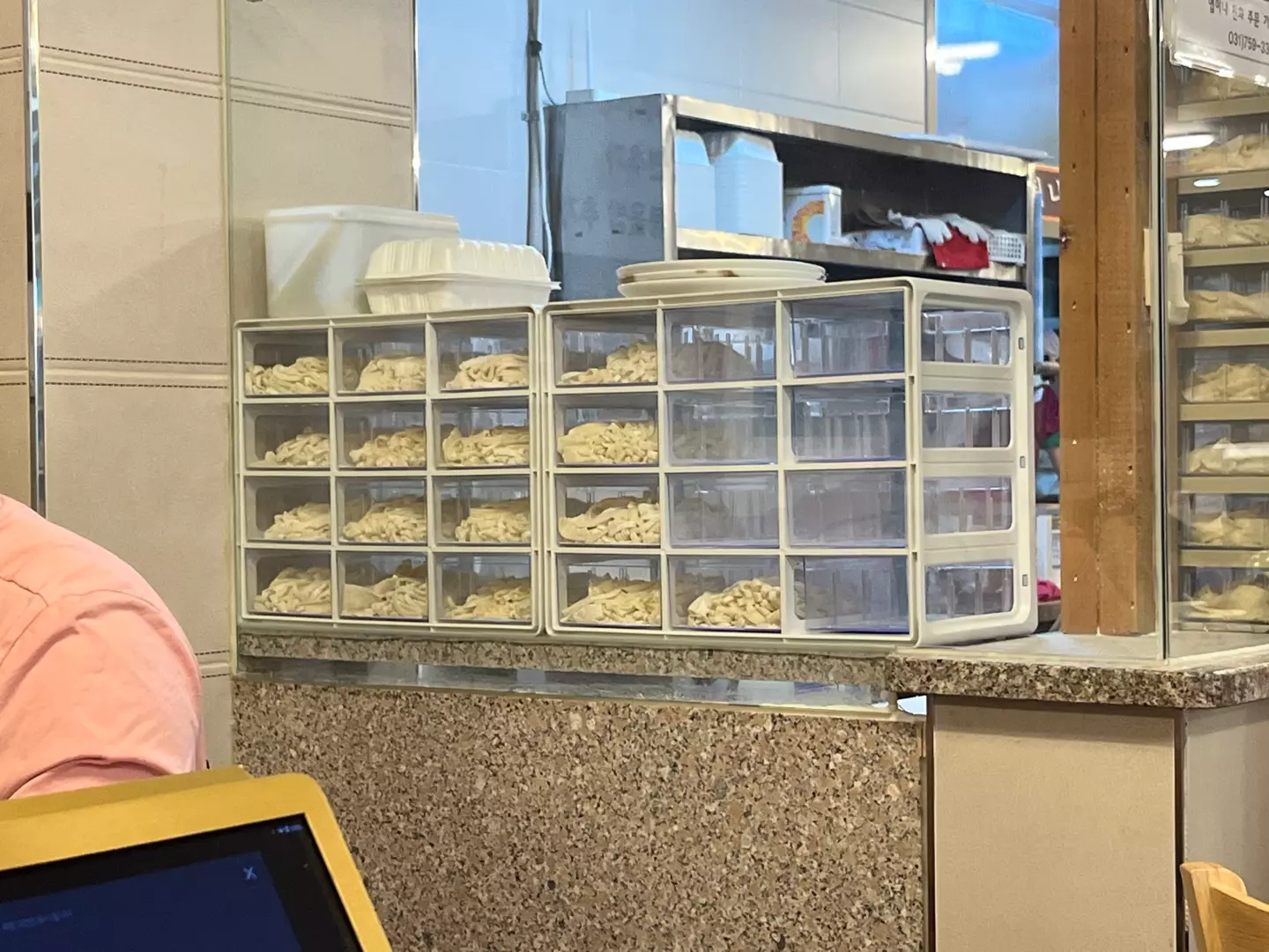 저희가 앉은 테이블 좌측이 주방이었는데 면발은 미리 뽑아서 정리해두었더라고요.