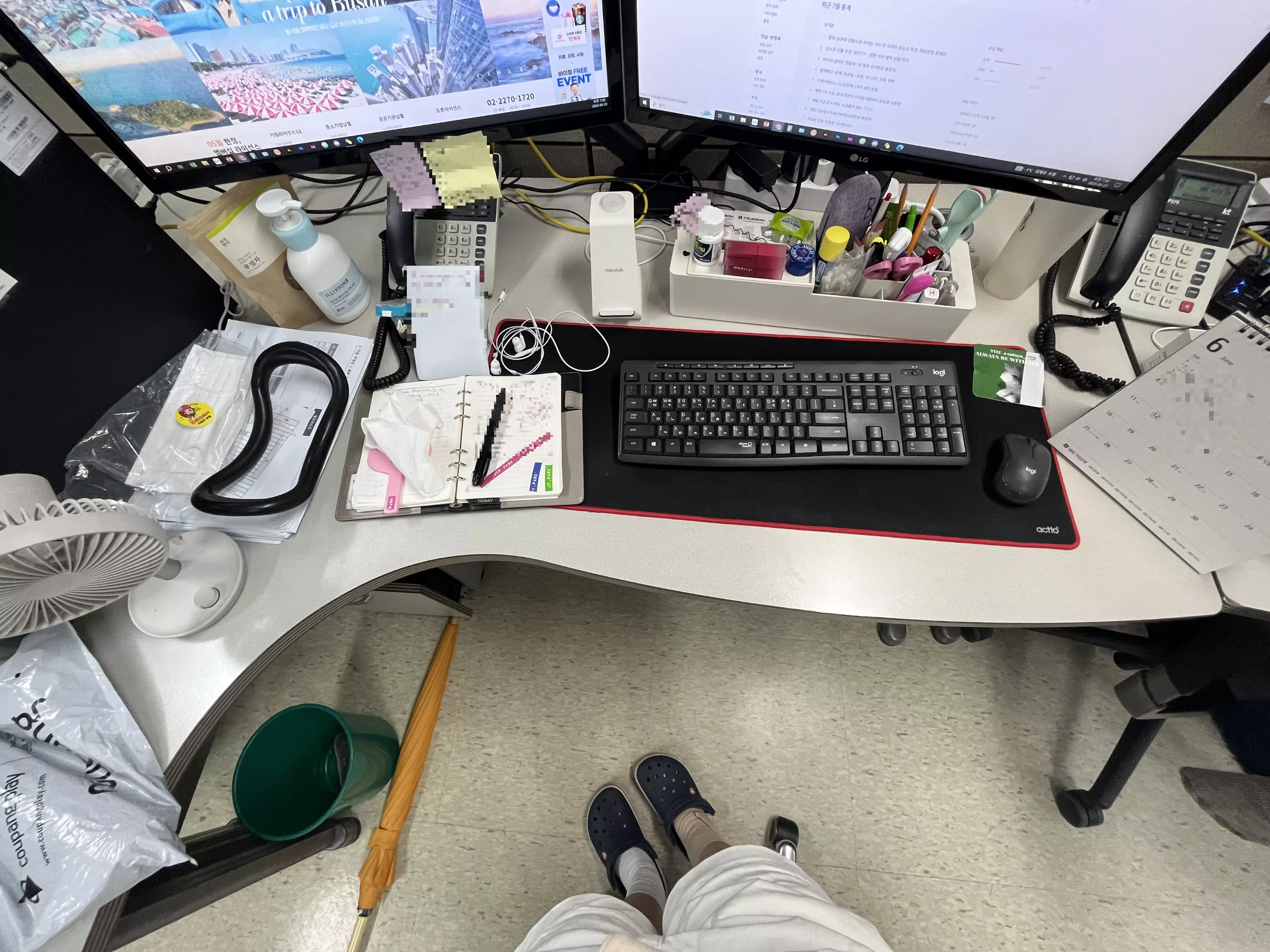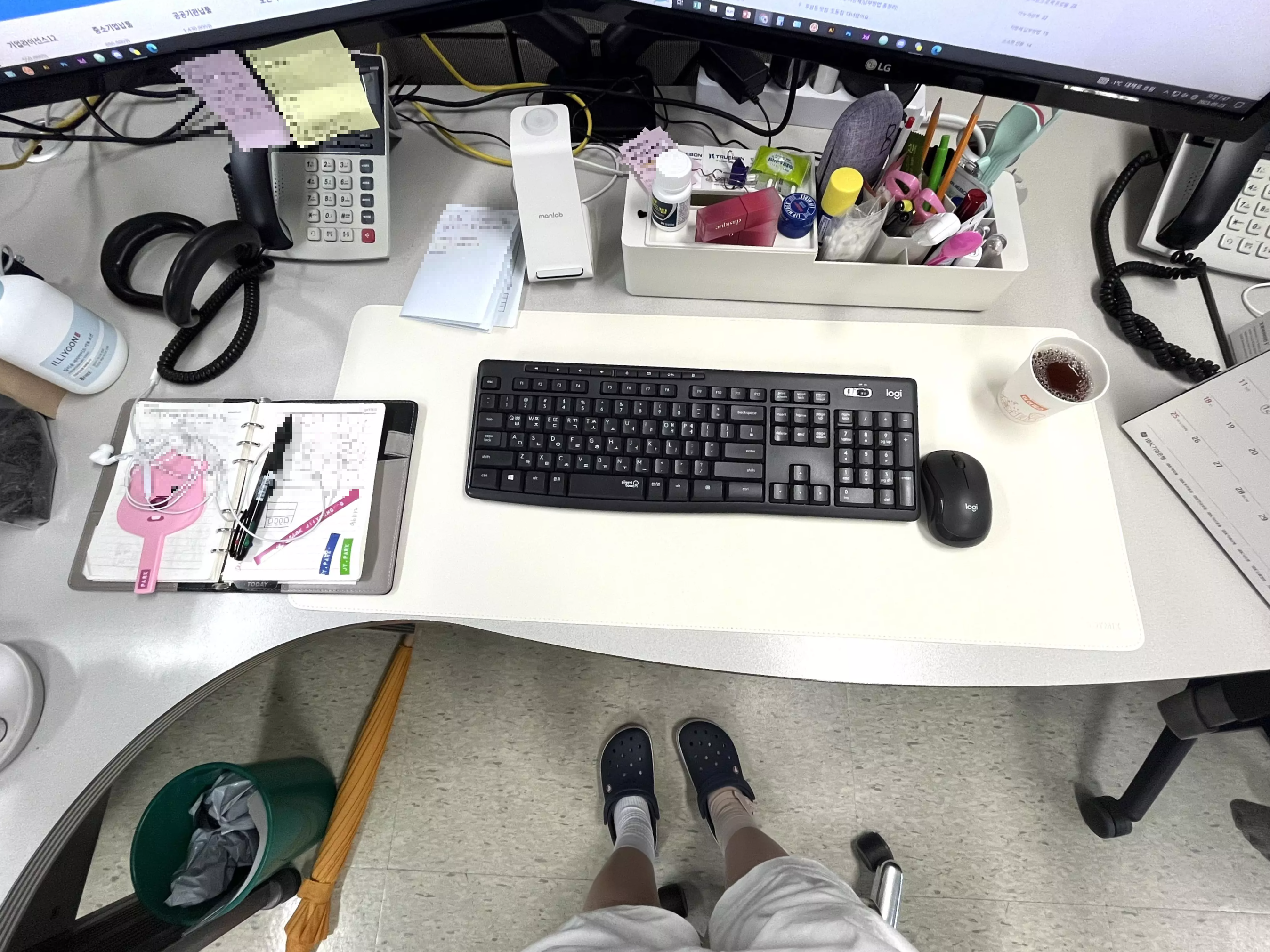 아직 너저분 하지만 이면지들을 치우고 마우스패드를 교체하니 한결 화사한 모습입니다.