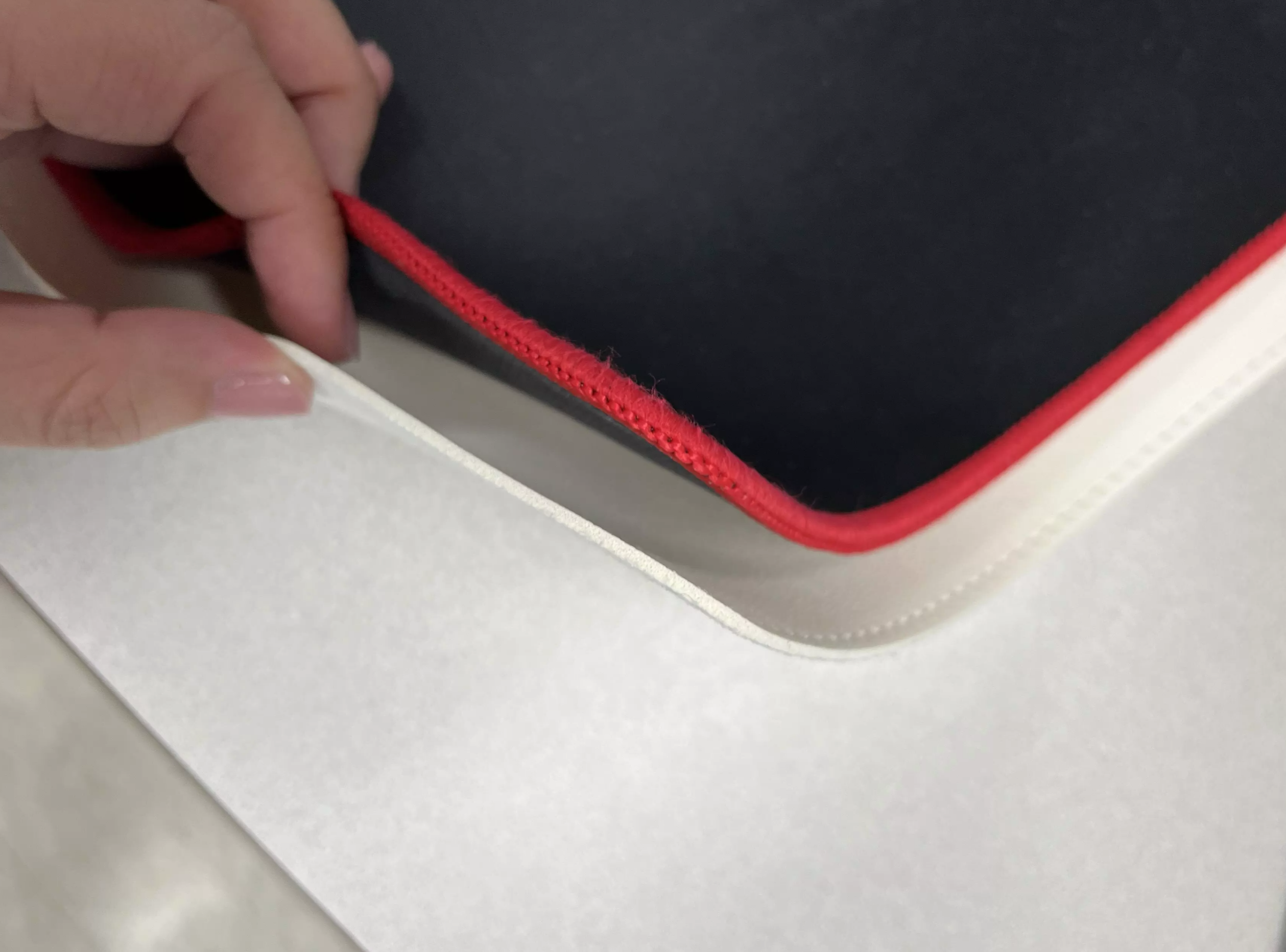 재질은 인조가죽으로 생활 방수가 됩니다. 이전의 패드는 물을 그대로 흡수했어요. 먼지가 붙어도 잘 떨어지지 않았고요.