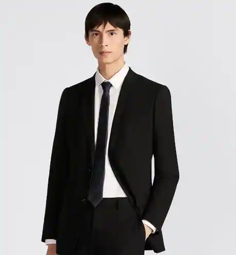 블랙 컬러의 경량 울과 모헤어 캔버스로 제작되었으며, 탈착식 CD Icon 핀으로 장식한 피크 라펠이 돋보이는 재킷입니다.