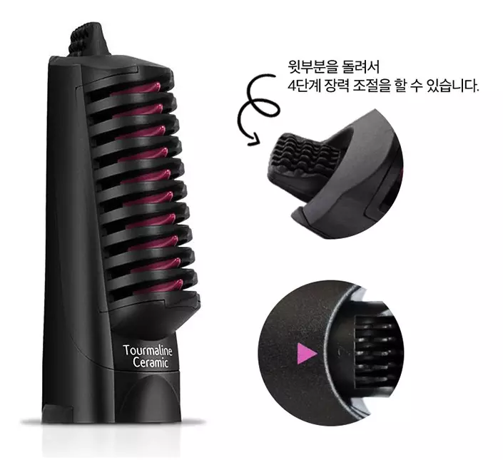 윗부분에 장력 조절하는 버튼이 있어요. 머리카락을 강하게 잡아주기도 하고, 약하게 조절하면 부드럽게 머리를 빗을 수 있어요!