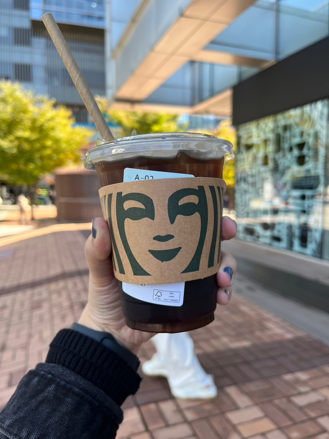 깜빡하고 커피를 내리지 못했다. 평소보다 일찍 도착하기도 했고, 커피는 먹어야했기에 스벅에서 따뜻한 아메리카노 그란데사이즈로 사이렌오더를 했다. 컵이 없었는지 벤티사이즈에 주셨다고 했다. 덕분에 더 따듯한 느낌이었다.
