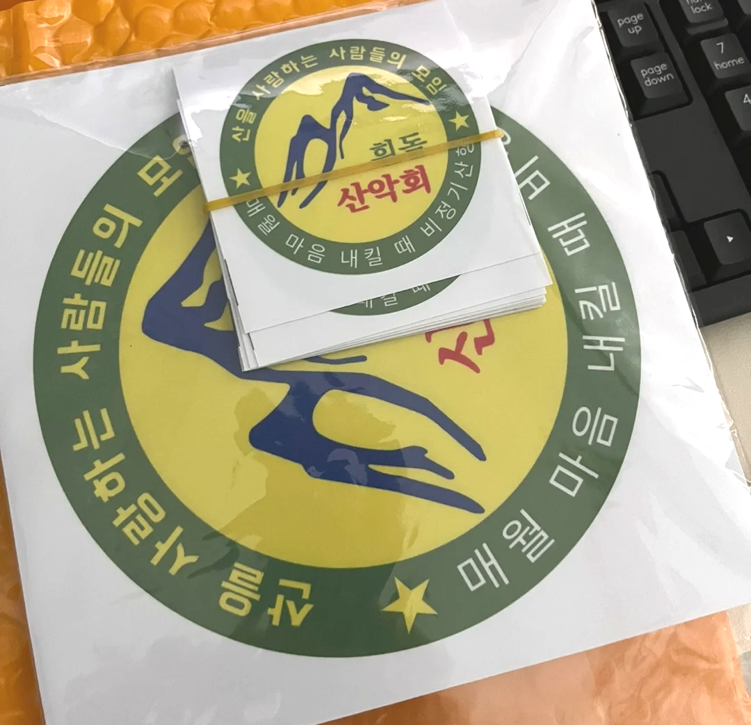 처음 저희 산악회에서도 제작하면 재밌겠다 싶어 7*7cm의 스티커를 제작했는데요.