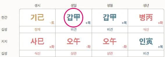 본인의 지지를 확인하면 십간을 알 수 있어요.