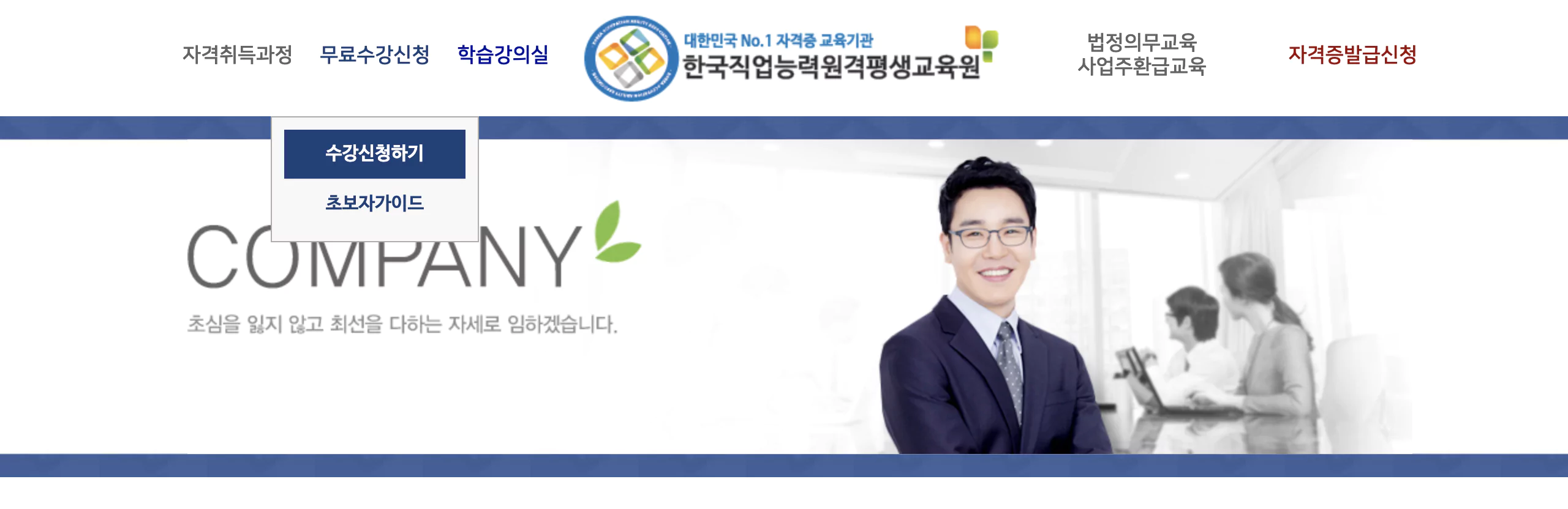 위의 메뉴에서 무료수강신청 > 수강신청하기를 눌러주세요.