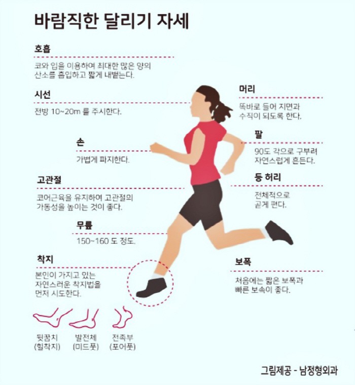 미드풋 착지가 가장 이상적입니다.