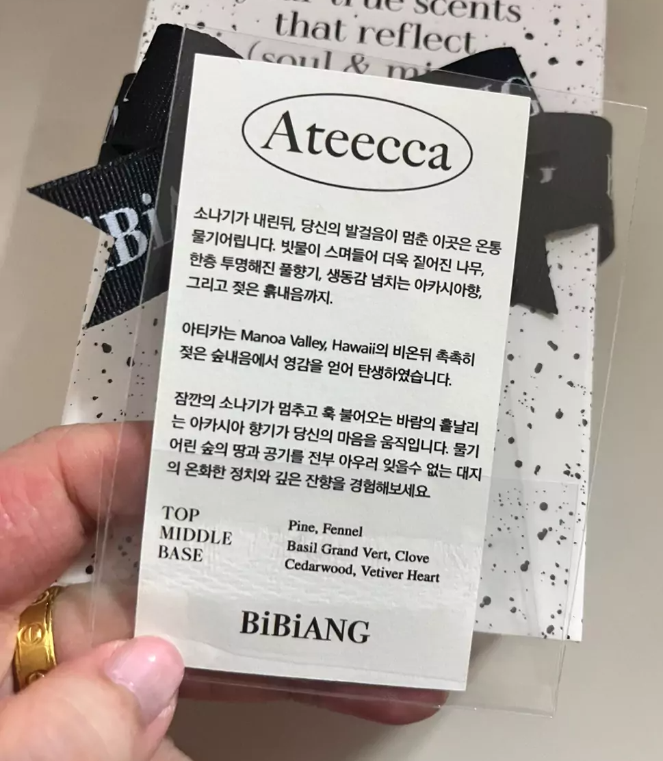 비비앙의 Ateecca 향수 종이를 보내주셨어요.
