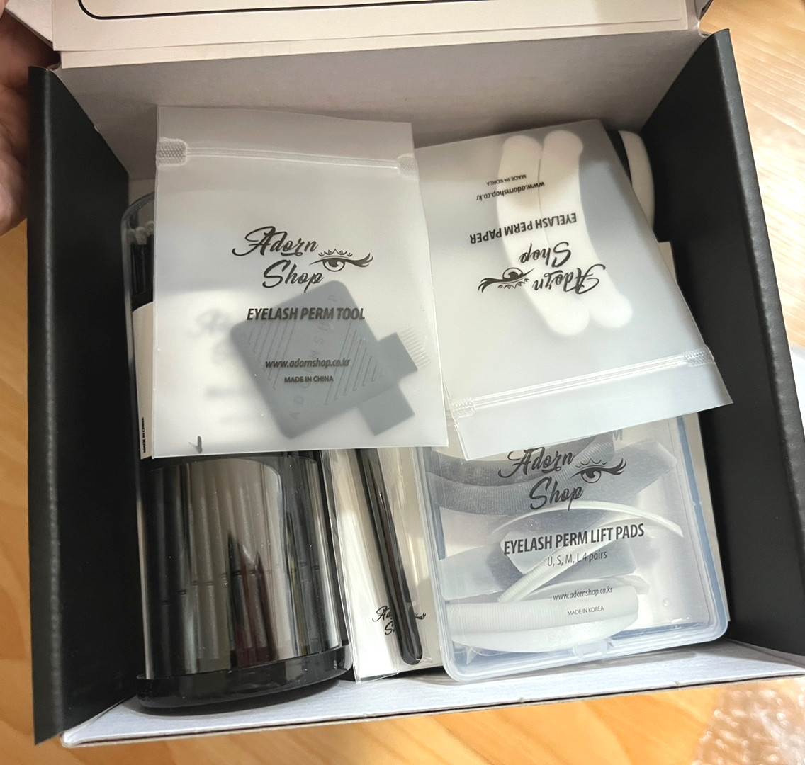 두 가지 모두 앙지에게 추천을 받아 구매하게 되었다. 이유는 앙지의 속눈썹 펌이 마스카라를 안해도 '촥' 되었기 때문에 나도 살 수 밖에 없었다. 전부터 궁금하긴 했는데, 의심스럽기도 했고 불편하겠다 싶어 구매를 미루었는데 실사용자의 리뷰를 영접하고 구매해버렸다. 구매전 눈주위 피부가 약하기도 하고, 눈에 들어가면 어쩌나 걱정이 있었다. 상세페이지를 보니 저자극 판정/6대 환경유해물질 전항목 불검출! 그래서 믿어보기로 했다. 아던샵 셀프 속눈썹펌 키트 파마세트 10회분이고, 가격은 29,900원 무료배송이다.